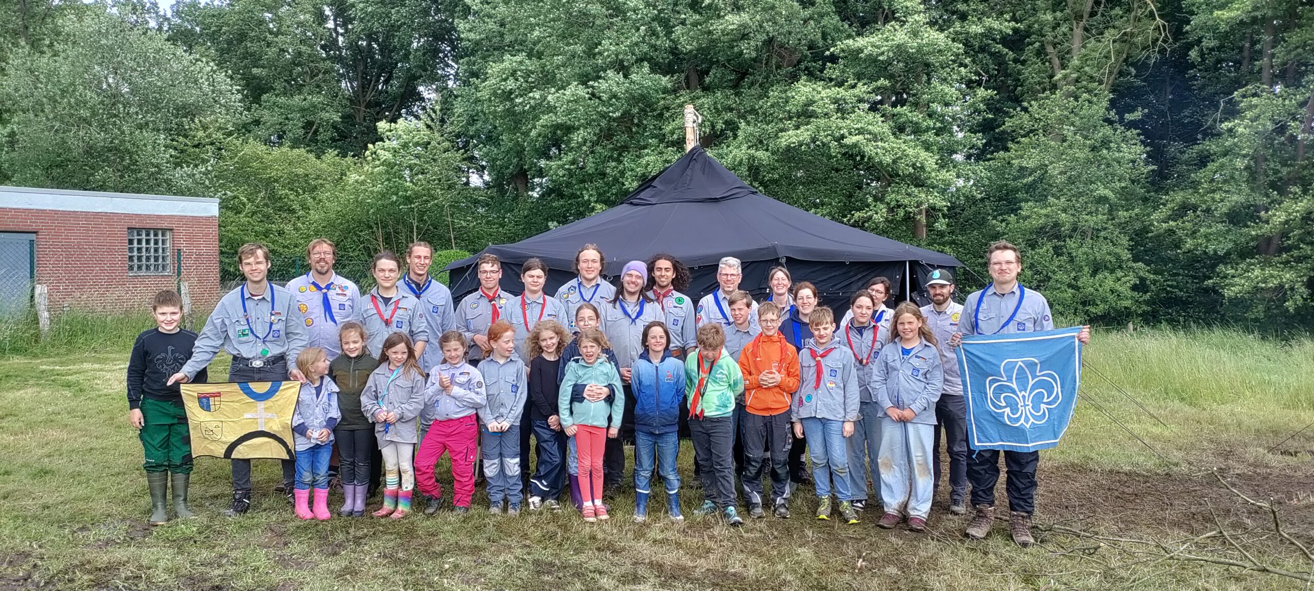 Unseren Stammesgründerinnen war es wichtig, sich nach einem Vordenker zu benennen, der einen tiefen christlichen Glauben hatte, sich weltoffen zeigte und verstand, dass dies mit dem Denken und der Lebensfreude nicht im Widerspruch steht. Dies spiegelt sich sowohl auf unserem Stammesbanner, als auch unserem Aufnäher wider. Mit den Farben des Stadtwappens wird im unteren Teil der Fluss ‘Gladbach’, dargestellt. Darüber in schwarz ein Bogen für die Erde, welcher durch ein christliches Kreuz mit dem Himmel – einem blauen Bogen – verbunden ist.