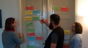 Danach experimentieren wir mit verschiedenen Online-Tools. Womit können wir Anträge am Besten auf die Leinwand werfen? Wer sollte wie auf welche Informationen zugreifen können? Nach einigen Diskussionen entscheiden wir uns für ein paar Neuerungen bei der nächsten BV – lasst euch überraschen!