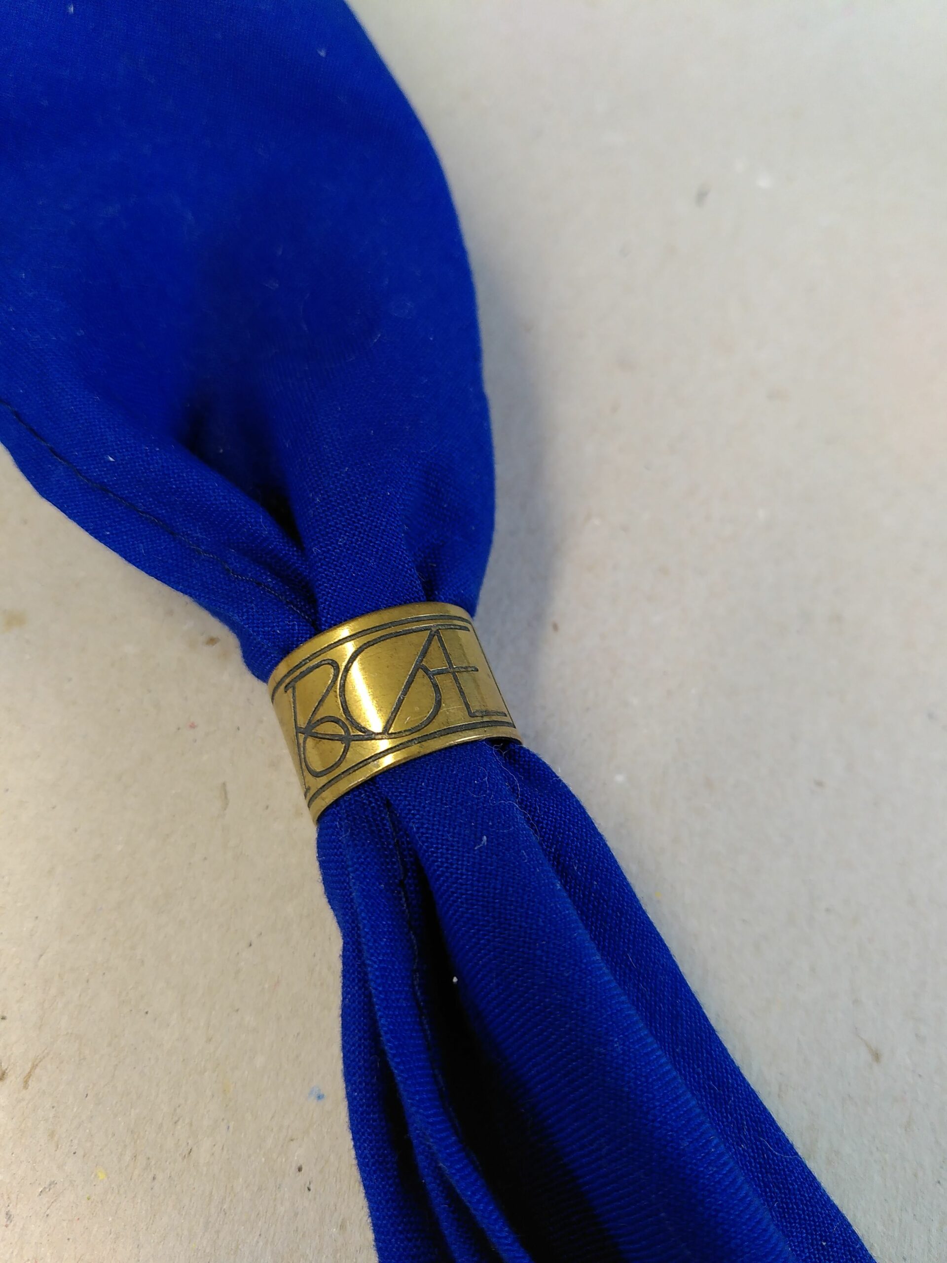 Besonders gefreut habe ich mich aber über zwei kleine Päckchen, die hier ankamen: Die Witwe Jobst Bessers (Bundesführer CPD 1961 bis 1968), die auch die Tochter Heinrich Karschs ist (Bundeskanzler CPD 1935, Bundesführer CPD 1951 bis 1961) schenkte dem Archiv Trachtenhemden, Halstücher, Halstuchringe, Namensstempel und Fotos aus dem Pfadfinderleben von Heinrich Karsch und Jobst Besser, zusammen mit einer schönen Anekdote um den Halstuchring aus Messing mit der Gravur ROGATE (lat. „bittet“ sowie der Name des fünften Sonntags nach Ostern). Der wurde zum zweiten Bundeslager der CPD 1950 auf dem Kollenberg/Knüll ausgegeben. Das Messingrohr, aus dem die Ringe ausgesägt wurden, war Teil des Kamins des Hauses der Familie Karsch und wurde für die Ringe gestiftet, da solche Materialien damals noch selten waren.